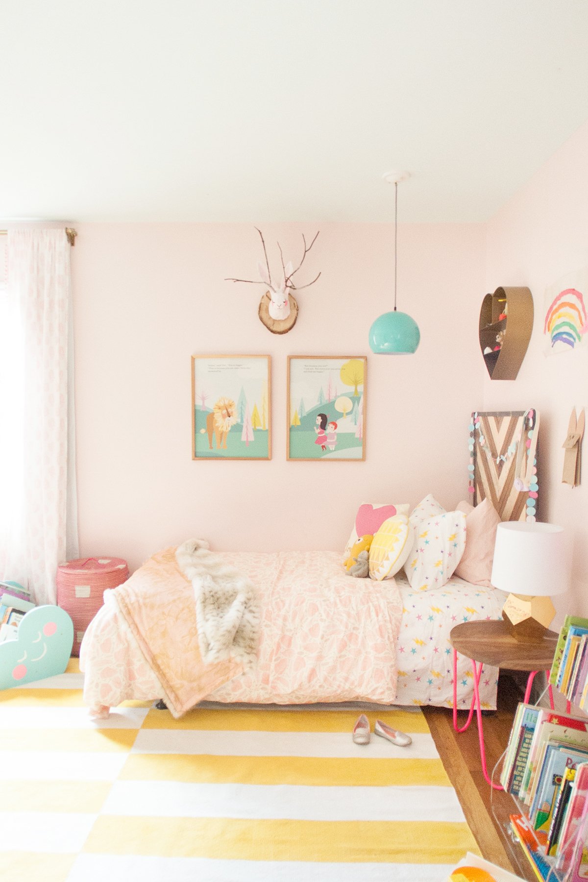 In December we will move house. For the first time, Elora is helping to design her own room. To begin, I gathered together a lot of fun girl’s room images on Pinterest to expose her a wide variety of styles. She quickly and confidently zeroed in on this dreamy pastel room from Lay Baby Lay.