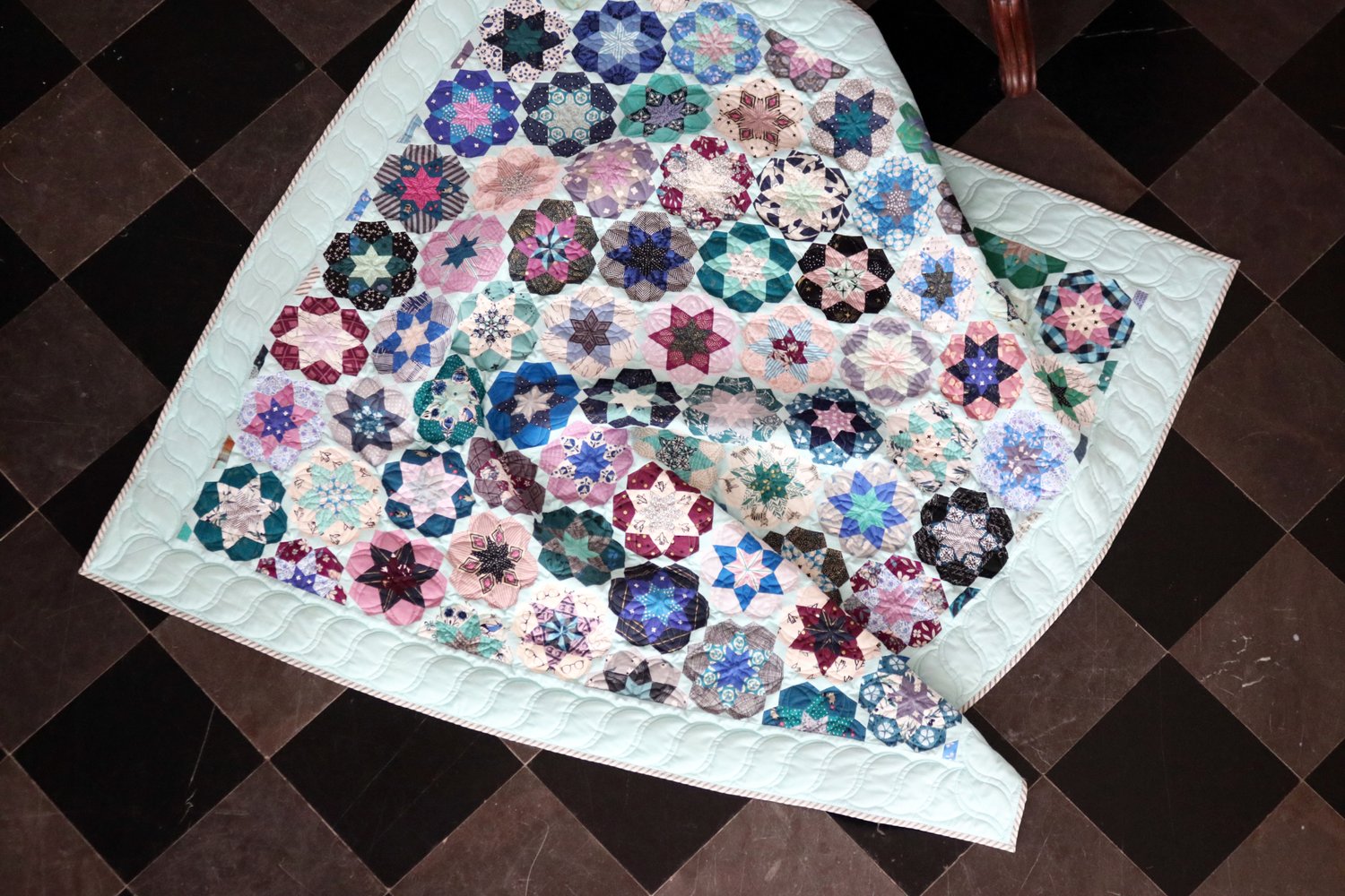 I do wonder if my quilt would be even lovelier had I hand-quilted the work, but I have come to terms with that feeling. This version is the one that I finished in 2023, the one that I could photograph at my New Year’s getaway in a grand old house in Belgium, the one that I have already, very happily used.
