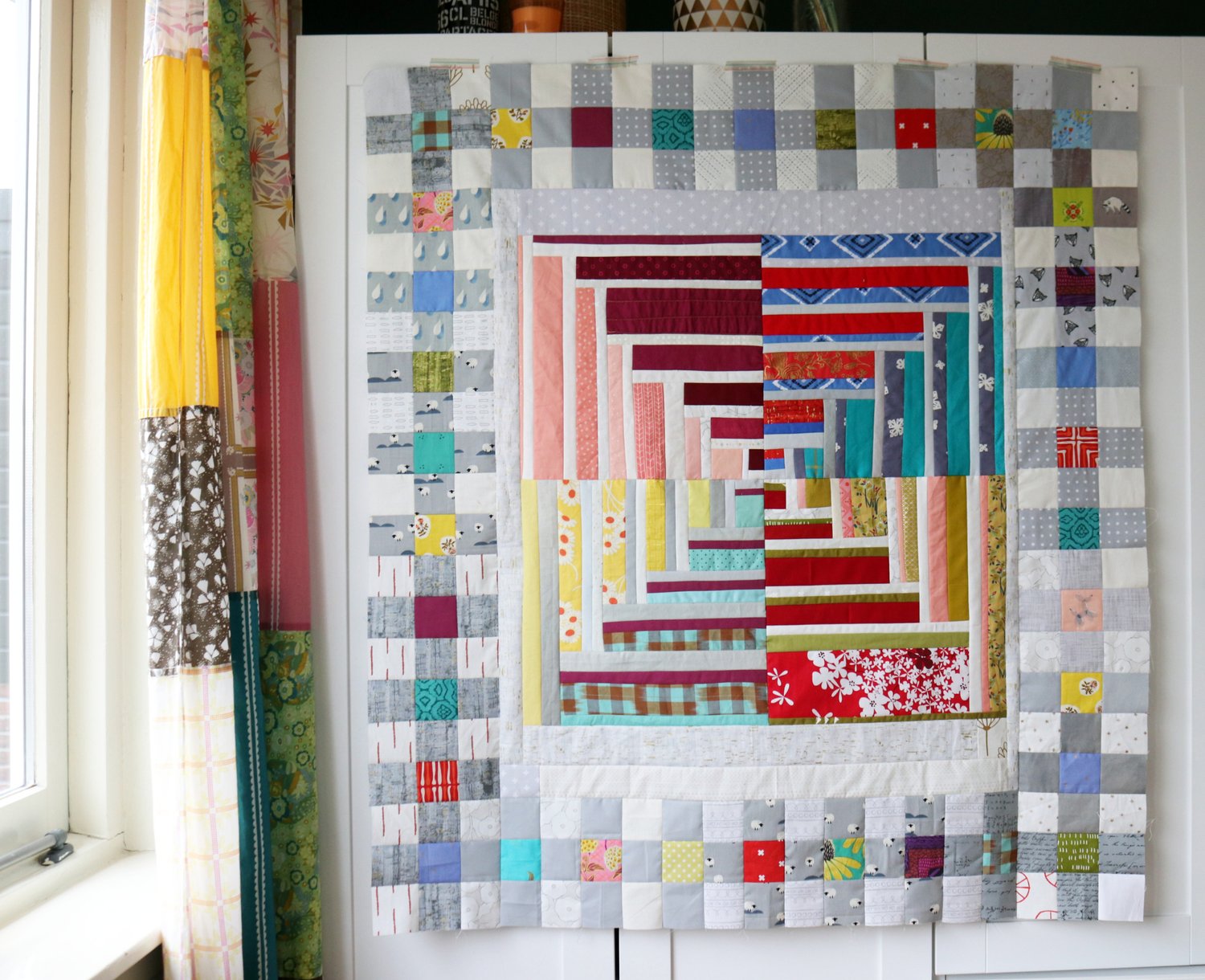 On my design wall I’ve sketched out the first round - gray plus blocks with centers in the same bright shades as my log cabins. I find that my gray scraps are few and far between. That’s because I don’t often sew with gray. It can feel cool and detached to me. Good thing there’s always stash fabrics when scraps run dry.